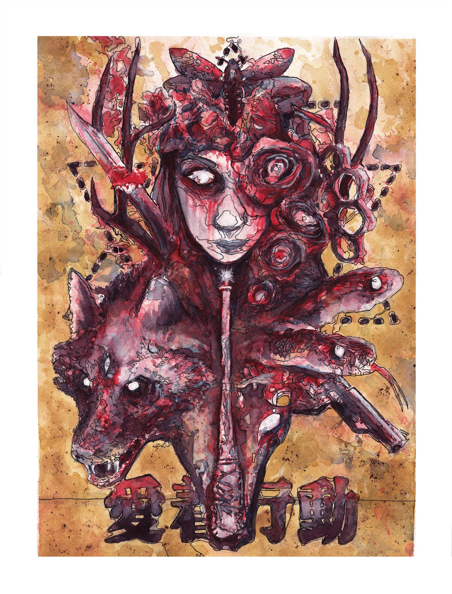 "Happiness and Self-destruction" Watercolor and ink